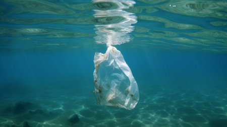 Plastic bags floating in the sea, the problem of pollution and dirty oceans. Generative AI