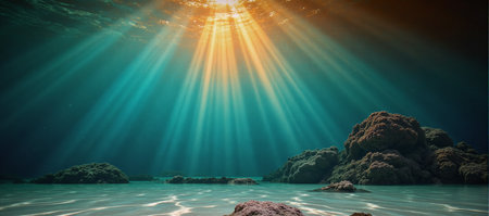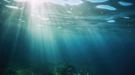 Sunlight rays illuminate underwater world creating a shimmering effect