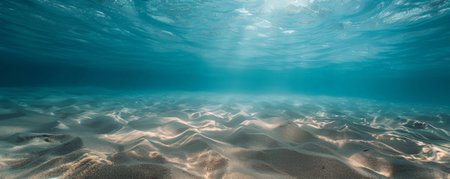 underwater sand floor Light shines underwater clear water empty seabed The sand surface is in the shape of waves under the sea
