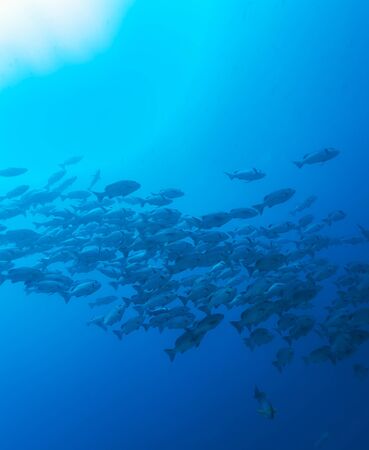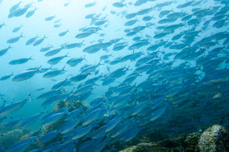 Massive school of sardines in a shallow reef. Sardine shoal or sardine run in Moalboal is a famous tourist destination in the southern town of Cebu, Philippines.