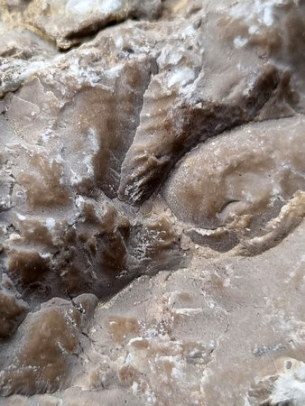 Detailed macro shot of fossil imprints on a weathered limestone rock, capturing the texture and timeless essence of Earth's ancient past.