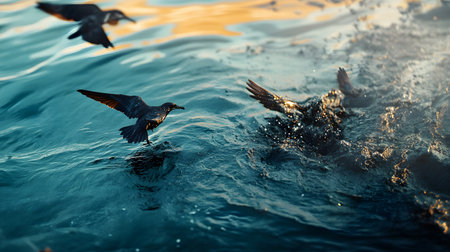 A mesmerizing scene of birds diving into shimmering water, showcasing the beauty of nature's interactions with wildlife.