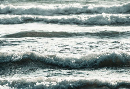 Blue sea with waves and foam. Sea water background. Sea waves.