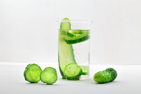 Fresh sliced cucumber isolated on white background, vegetable salad, fresh vegetable