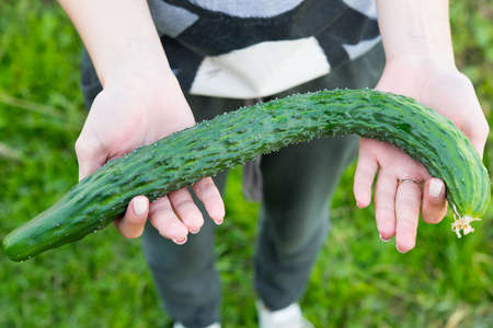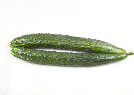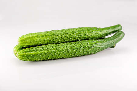 Long, crooked, fresh cucumbers on a white background. High quality photo