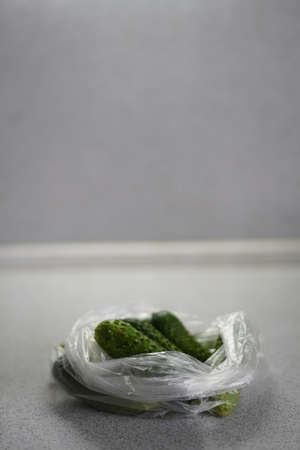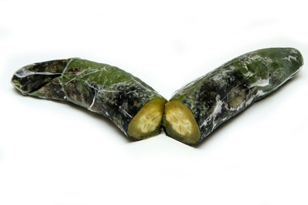 A picture of a rotten cucumber packed in the plastic foil. The foil is useless, it only damages the vegetable and it only goes moldy.