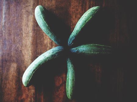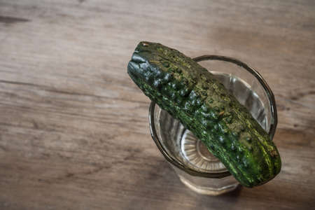 Cucumber on a wooden table in the kitchen. Selective focus.