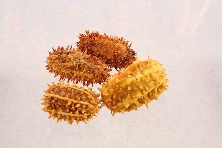 Exotic cucumbers. African wild cucumber Cucumis africanus tropical plant. Background of amazing wild cucumbers