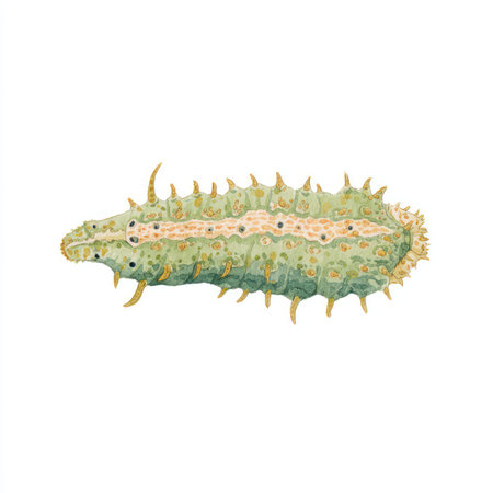 This watercolor illustration features a detailed sea cucumber on a clean white background, highlighting its unique texture and form, perfect for educational and artistic use.