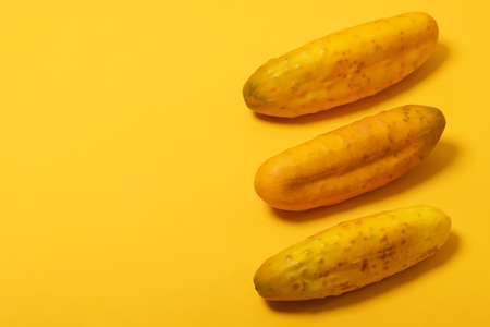 Ugly food cucumbers on a white background. Fused vegetables. Copy spase.