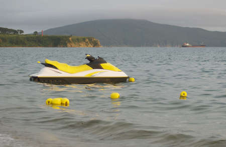 A Jet Ski, or Sea Scooter, left abandoned on the shoreline