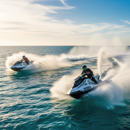 Exciting Jetski Adventure on Blue Waters - AI GeneratedExciting Jetski Adventure on Blue Waters - AI Generated