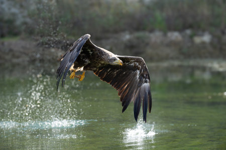 Capturing the Catch: Magnificent White-tailed Eagle Snatches Fish in Mid-air