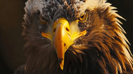 head of a beautiful eagle with a yellow bright beak close-up