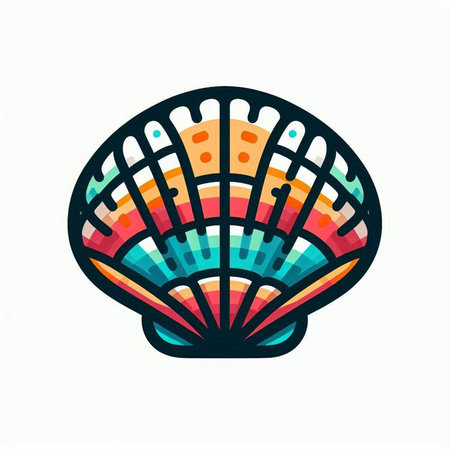 Seashell on a diffuse and colorful background Cheerful and colorful marine and vacation set