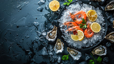 A top view of fresh festival seafood platters, with ample space for branding or text