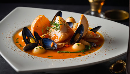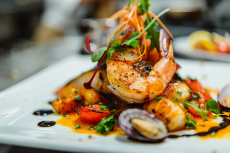 A close-up of a beautifully plated seafood dish prepared by a master chef.