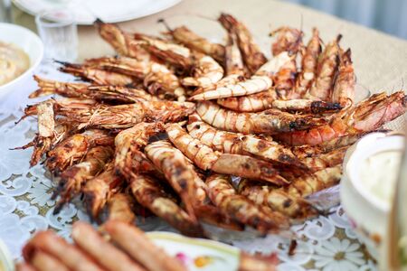 Fresh tropical seafood crabs grilled barbecue for dinner.
