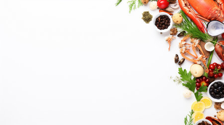 Lobster and shellfish with copy space on a white background