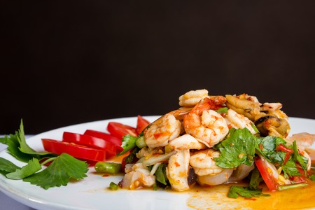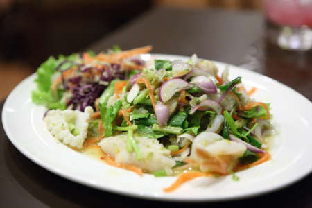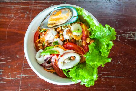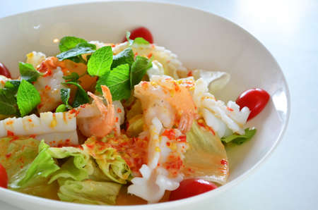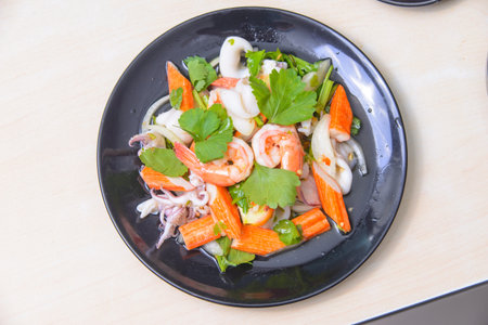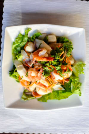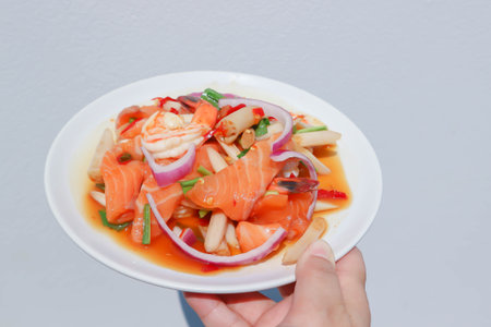 salmon and shrimp salad , spicy salad or spicy seafood salad for serve