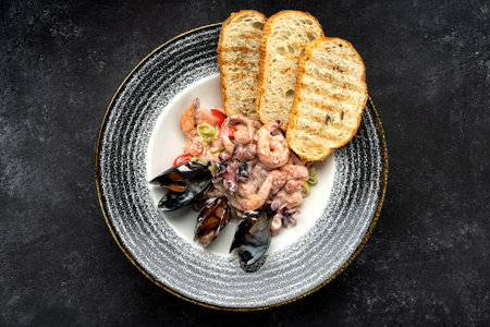 Fresh Seafood Mix with Creamy Sauce and Crispy Toast