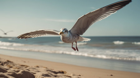 A majestic seagull soaring over the vast ocean