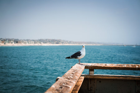 seagull sitting on rail of beautiful terrace