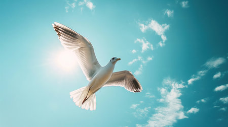 Graceful Flight Seagull Soaring in the Blue Sky