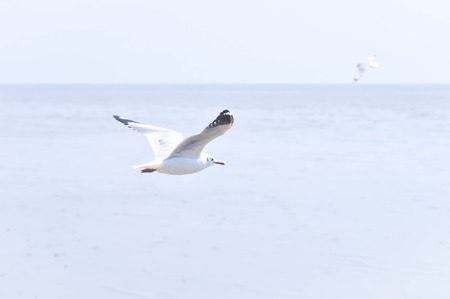 Seagull flying in the sky over the sea. Bird background