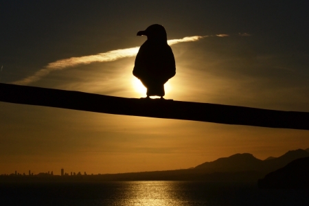 Profile silhouette of sitting seagull