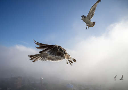 Seagulls in the sky close-up