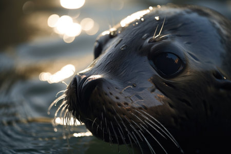 close-up of marine mammals whiskers, with sunlight filtering through water, created with generative ai
