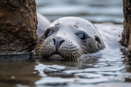 AI Generated. Closeup of a freshwater seal in the ocean