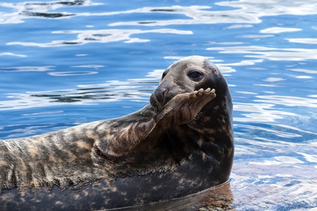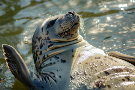 Swimming, seal resting in the sun in the water