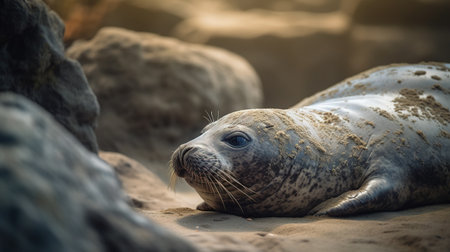 seal sunbathing on the beach generative ai