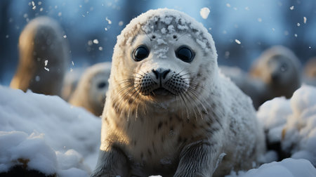 Baby seal in the snow. Generative AI.
