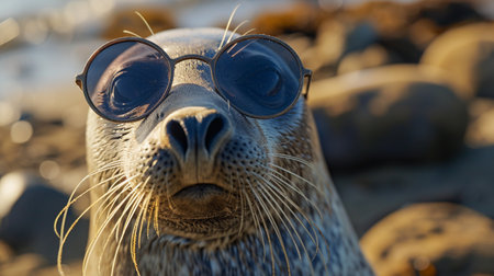 Beautiful seal portrait in sunglasses