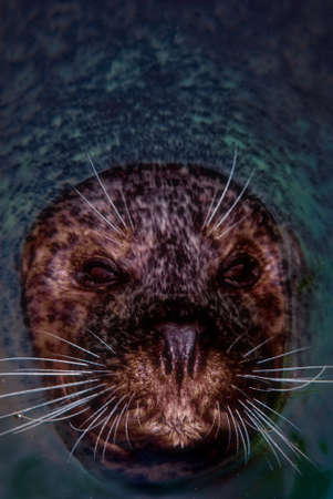 seal swimming in the water and looking at the camera close up