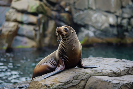 A seal sitting on a rock. Generative AI.