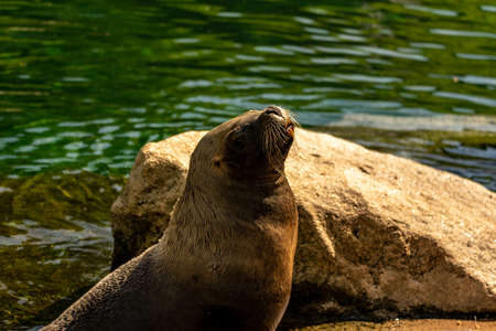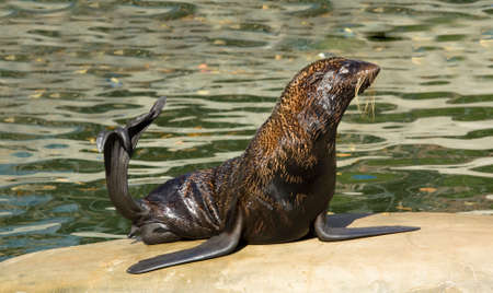 Proud fur seal near the pool at the zoo.