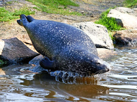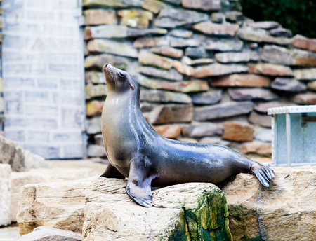 Copenhagen. Denmark. July 30, 2019: Beautiful sea calf sits on the stones. Animal world copenhagen zoo