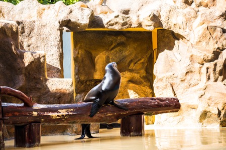 Sea Lionsea lion at the zoo. sea lion sitting on a log
