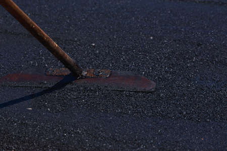 Road repair and thin layer of new asphalt close-up.