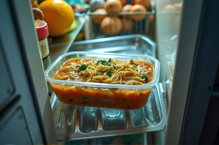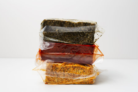 frozen food ready to eat meal in plastic packaging defrost for warming on white background