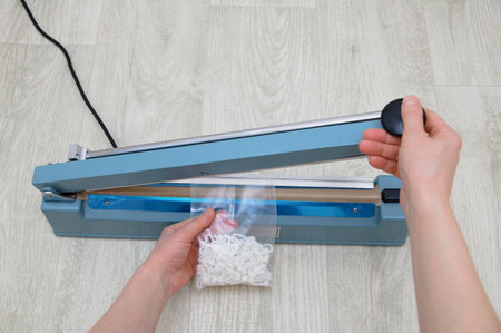 Sealer for vacuum packing on slate table, closeup