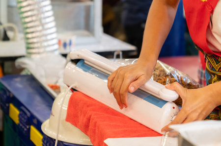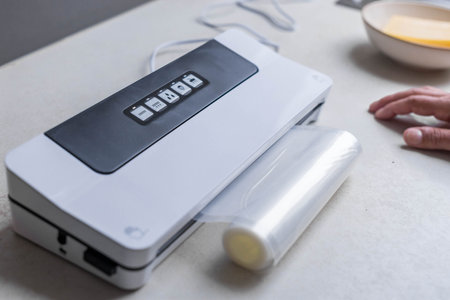 Hands Skillfully Preparing Vacuum Sealing for Food Preservation and Storage Purposes