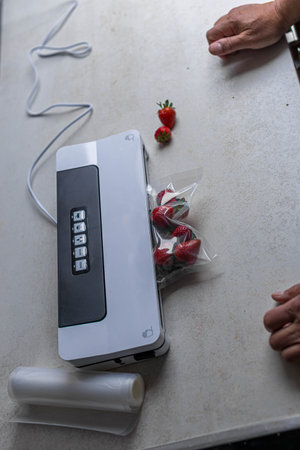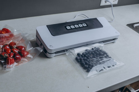 fresh berries in a vacuum bag with a vacuumiser machine