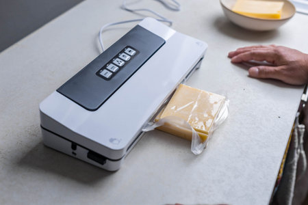 Sealer for vacuum packing on light green background