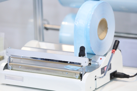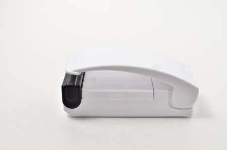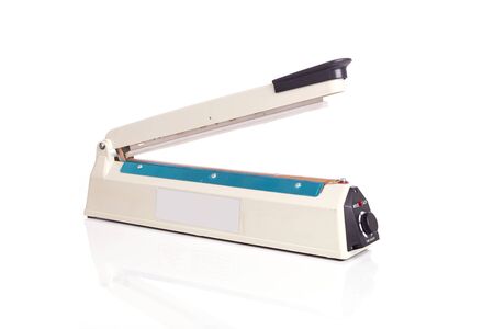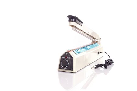 Close up plastic bag sealer isolated on white background