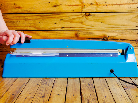 Sealer for vacuum packing on blue background
